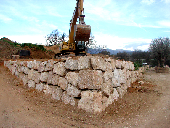 Ces "murs secs" constituent un élément "poids" capable de soutenir des masses importantes; n'étant pas maçonnés ils offrent une certaine flexibilité au tassement car avec le temps, les pierres se calent les unes sur les autres. Tous les enrochements ci-dessous sont effectués et crées par mes soins.